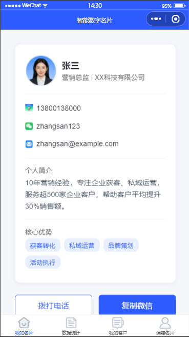 名片一旦发出去、用起来,几乎不会换平台,数据、客户、流量都沉淀在你这里。