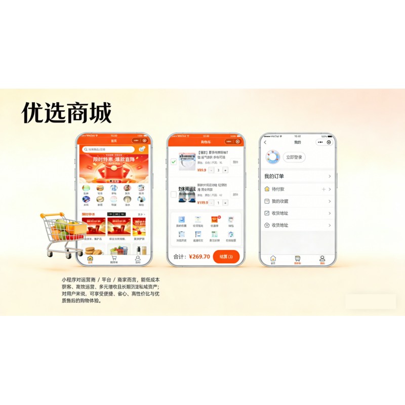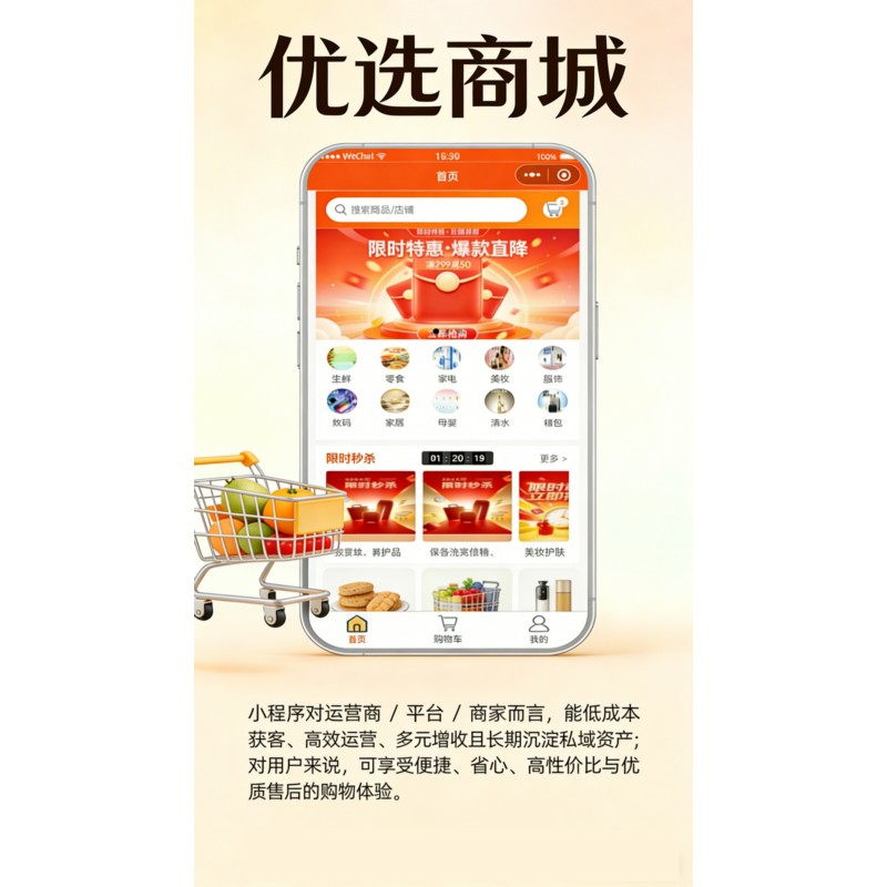 小程序对运营商 / 平台 / 商家而言,能低成本获客、高效运营、多元增收且长期沉淀私域资产;对用户来说,可享受便捷、省心、高性价比与优质售后的购物体验。</br>1.免费体验版,并不是看演示,体验小程序操作,而是让您免费体验真实的运营.所以必须申请账号,真实部署,体验版下单后也请联系服务商体验真实运营.